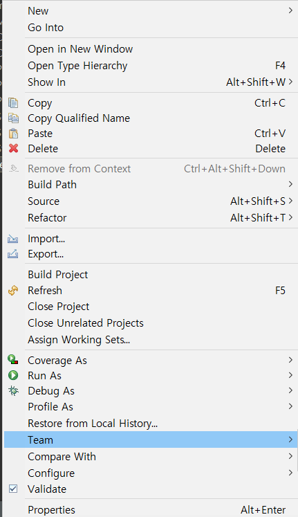1. 깃허브에 올리고 싶은 프로젝트에 오른쪽 마우스를 클릭